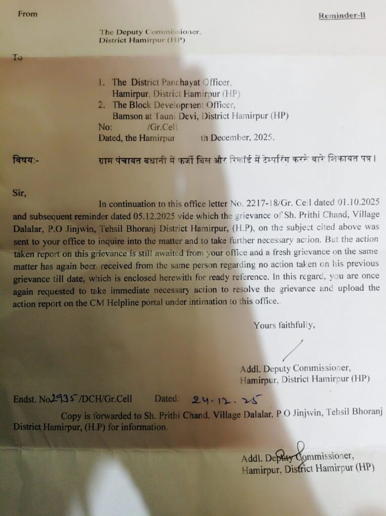 टौणी देवी विकास खंड के अंतर्गत आने वाली ग्राम पंचायत बधानी में विकास कार्यों से जुड़े कथित फर्जी बिलों, रिकॉर्ड में टेंपरिंग और वित्तीय अनियमितताओं के आरोप सामने आए हैं।