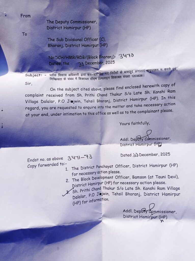 बधानी पंचायत घोटाला: प्रशासन की सख्ती , तीन माह की निष्क्रियता पर गिरी गाज, बीडीओ बमसन जांच से हटाई गई — एसडीएम भोरंज को सौंपी गई जिम्मेदारी