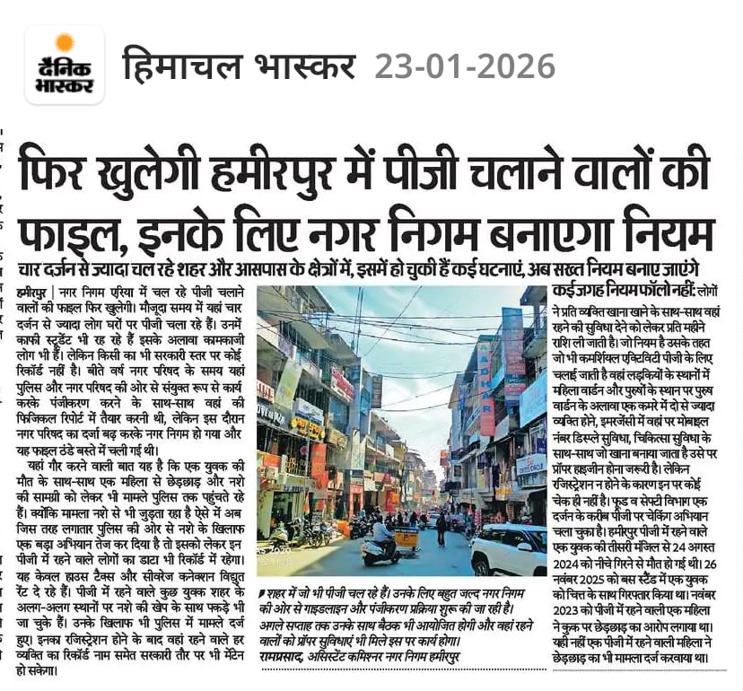 हमीरपुर जैसे शिक्षा केंद्र में यदि पीजी सेंटर ही युवाओं को नशे और अपराध की ओर धकेलने लगें, तो यह समाज के लिए गंभीर चेतावनी है।