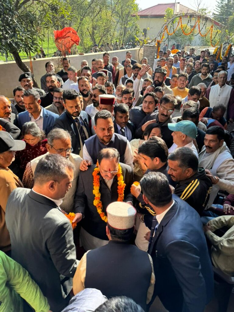 महाशिवरात्रि के पावन अवसर पर केंद्रीय स्वास्थ्य, रसायन एवं उर्वरक मंत्री जगत प्रकाश नड्डा हमीरपुर प्रवास पर रहे। इस दौरान वह सबसे पहले हमीरपुर के विधायक आशीष शर्मा के निवास स्थान गांव मुलाना पहुंचे, जहां उन्होंने कार्यकर्ताओं से आत्मीय मुलाकात की और संगठनात्मक विषयों पर चर्चा की।