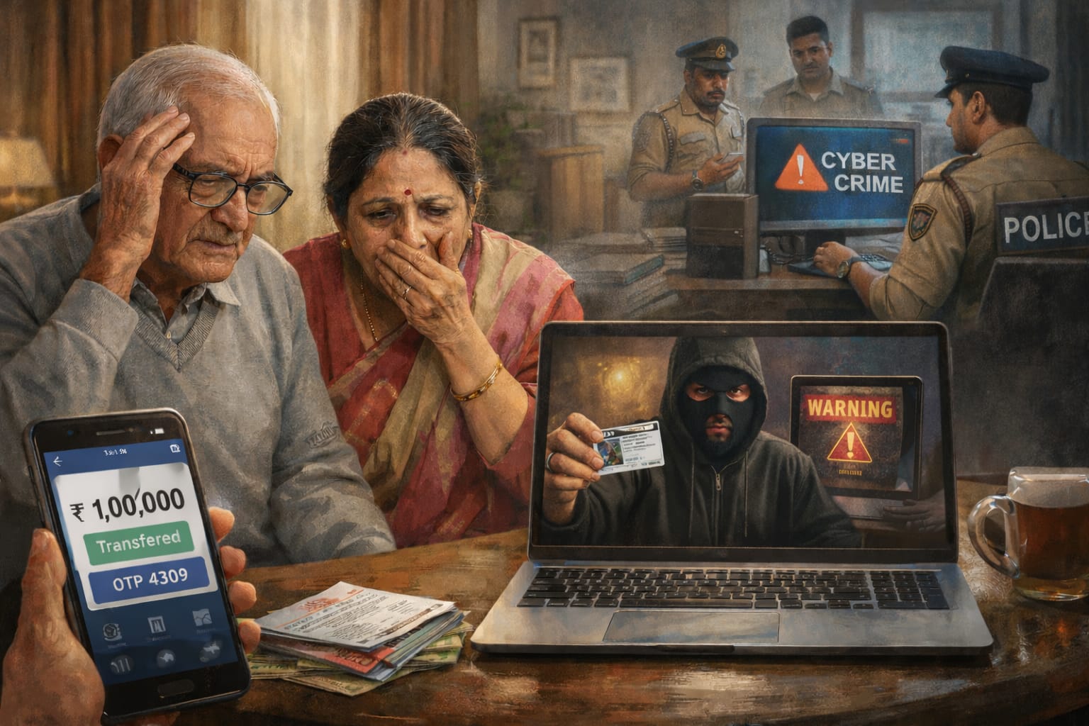 साइबर ठगों ने खुद को एंटी टेररिस्ट अधिकारी बताकर 78 वर्षीय सेवानिवृत्त अधिकारी और उनकी पत्नी को लगभग 20 घंटे तक ‘डिजिटल अरेस्ट’ के नाम पर मानसिक दबाव में रखा और उनसे 80 हजार रुपये ठग लिए। ठगों ने दंपती को दिल्ली बम ब्लास्ट और आतंकी गतिविधियों में संलिप्तता का डर दिखाकर उनका मनोबल तोड़ा। हालांकि, बैंक प्रबंधन की सतर्कता से दंपती की 6 लाख रुपये की एफडी टूटने से बच गई और बड़ी ठगी टल गई।