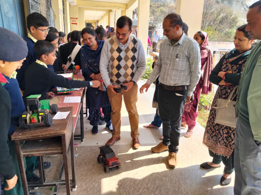 इसी शैक्षणिक दृष्टि को आगे बढ़ाते हुए राष्ट्रीय आविष्कार अभियान के अंतर्गत कलाम विज्ञान क्लब एवं रामानुजम गणित क्लब द्वारा कक्षा छठी से नवमी तक के विद्यार्थियों की विज्ञान प्रदर्शनी आयोजित की गई। जिसका शुभारंभ विद्यालय प्रबंधन समिति के अध्यक्ष श्री विकास शर्मा द्वारा किया गया। उन्होंने कहा कि इस प्रकार की विज्ञान प्रदर्शनियाँ विद्यार्थियों को रटंत परीक्षा-तैयारी से आगे बढ़ाकर उन्हें प्रयोग, नवाचार और तार्किक चिंतन की दिशा में प्रेरित करती हैं। उन्होंने शिक्षकों के मार्गदर्शन और विद्यार्थियों के प्रयासों की सराहना की। प्रदर्शनी के माध्यम से विद्यार्थियों ने परीक्षा-अध्ययन में अर्जित वैज्ञानिक ज्ञान को व्यावहारिक रूप में प्रस्तुत किया। रोबोट,जल संचयन प्रणाली, सौर एवं पवन ऊर्जा उपकरण, प्रदूषण नियंत्रण उपाय, हाइड्रोलिक राकेट , स्वचालित यातायात नियंत्रण प्रणाली, जल शुद्धिकरण संयंत्र तथा ऊर्जा उत्पादन के साधनों पर आधारित मॉडल विद्यार्थियों की वैज्ञानिक समझ और रचनात्मक सोच को दर्शा रहे थे।