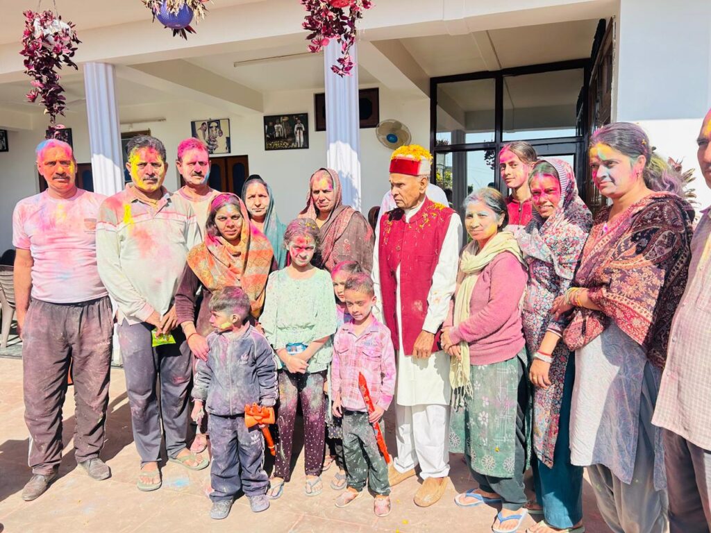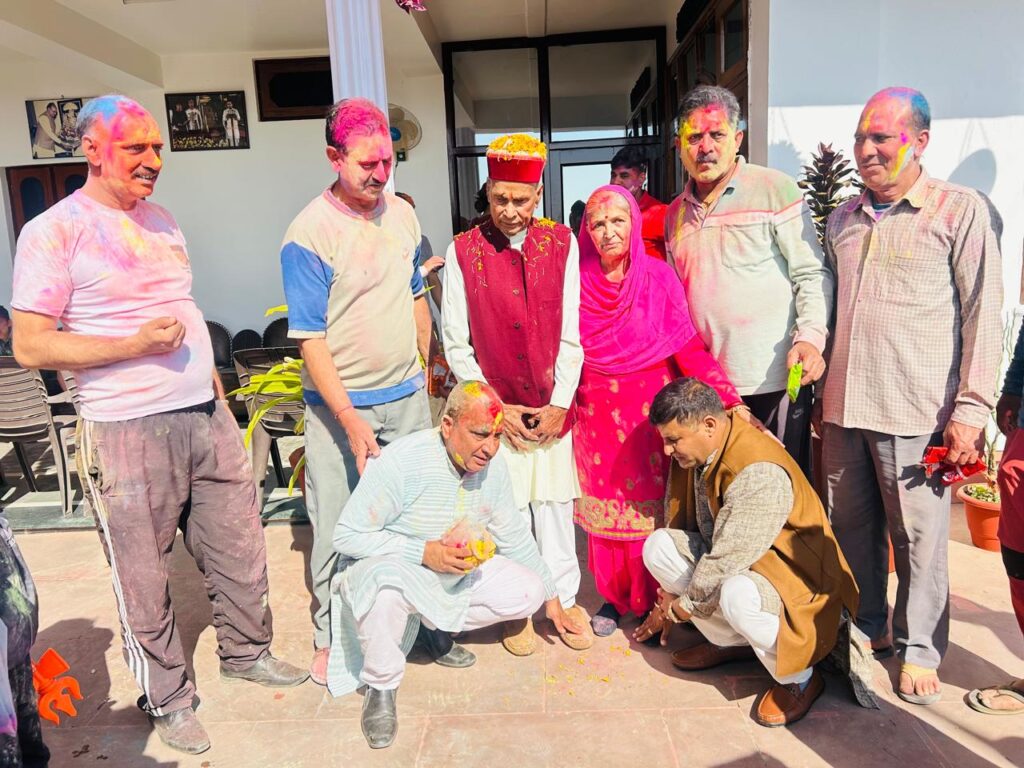 समीरपुर स्थित अपने आवास पर प्रो. प्रेम कुमार धूमल ने कार्यकर्ताओं व शुभचिंतकों के साथ मनाई होली