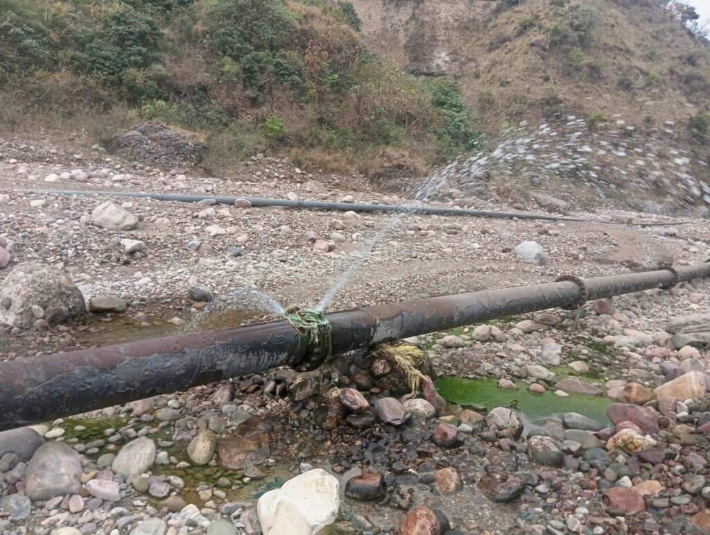 स्थानीय लोगों के अनुसार बाकर खड्ड में अवैध खनन के दौरान जेसीबी और पोकलैंड मशीनों ने कई जगह मुख्य पाइप लाइन को नुकसान पहुंचाया है, जिससे भारी मात्रा में पानी बहकर खड्डों में जा रहा है।
