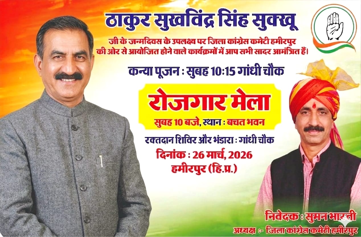 मुख्यमंत्री के जन्मदिन पर हमीरपुर में भव्य आयोजन, रोजगार मेला और नशा विरोधी अभियान की शुरुआत 25.03.2026 No Comments